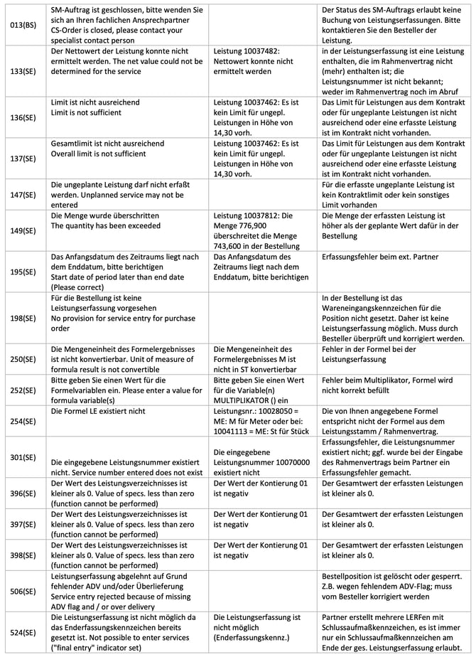 "506(SE) Es wurden keine Dienstleistungspositionen selektiert Leistungserfassung abgelehnt auf Grund fehlender ADV und/oder Überlieferung"
