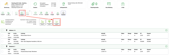 - Sobald das Aufmaß an den Auftraggeber übertragen wurde erhalten Sie einen weiteren Button "An Auftraggeber übermittelt".