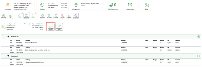 Bitte beachten Sie, dass Sie bei einem Schlussaufmaß den Auftrag schließen und Sie nur nach einer Ablehnung durch den Auftraggeber, dass bestehende Aufmaß wieder bearbeiten oder ein weiteres Aufmaß hinzufügen können.