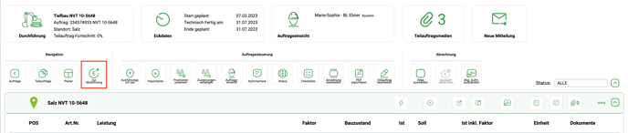 - Suchen Sie den Auftrag, bei welchem Aufmaße abgerechnet werden sollen.
