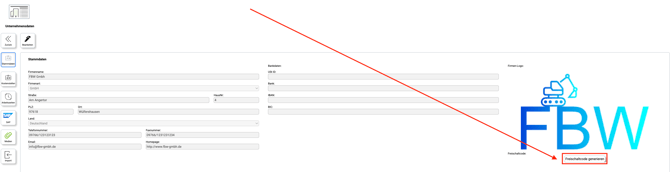 2. Hier sehen Sie rechts unter Ihrem Logo den Punkt "Freischaltcode generieren". Klicken Sie auf den Button „Freischaltcode generieren“.