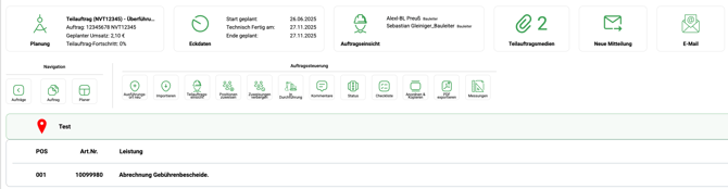 - Gehen Sie im Dashboard auf "Aufträge" und wählen Sie den Auftrag aus, welchen Sie dem Nachunternehmer zuweisen wollen.